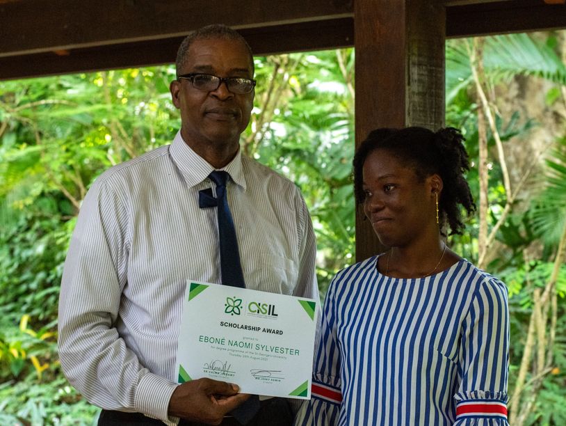 This year our scholarship is awarded to Eboné Sylvester for her tuition at the St. George’s University. CISIL’s scholarship programme is funded through donations from JECO Caribbean Inc. which previously awarded three (3) scholarships. Handing over the cheque to the St. Andrew’s school teacher was Advisory Board Director Jerry Edwin. “Eboné is a hard worker, very pleasant; she’s a dreamer. She reminds me of myself at a younger age. We want her to put all her energy into her studies knowing that her tuition is paid,” said Founder Dr. Valma Jessamy.